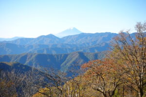 鍋割山まではコースの半分くらいが緩やかなアップダウンのある林道。そこを一生懸命走ったらもう全力を使い果たして疲れてしまった。山道に入り急登をヒーヒー言いながらもはや普通のハイキングのペースに成り下がり進んでいると、前方から颯爽と現れる三浦さん。もう山頂から折り返してきた。速すぎ。